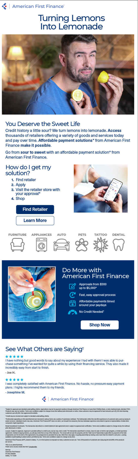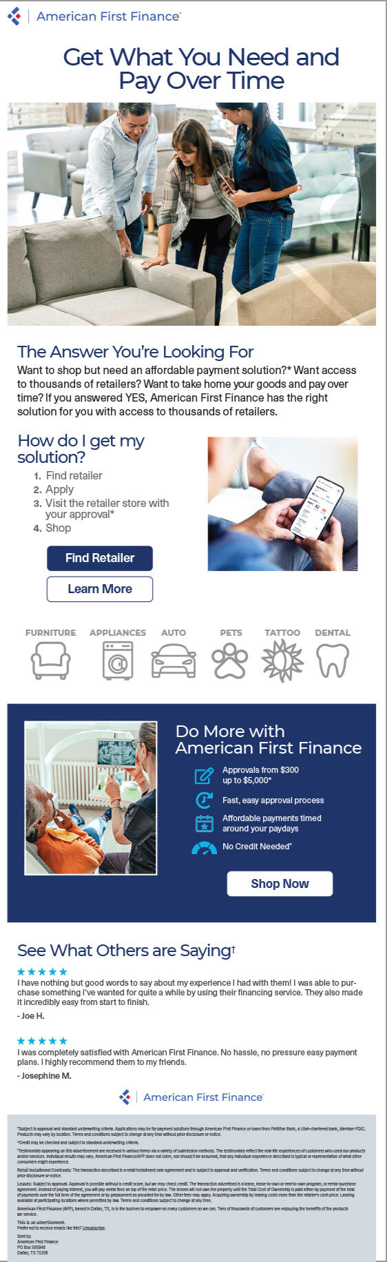 American First Finance required a comprehensive brand reset to support growth, improve clarity across channels, and establish a scalable creative system that could support performance marketing, partnerships, and enterprise expansion.As senior brand and creative leader, I owned the brand vision end-to-end — partnering closely with executive leadership to redefine positioning, establish governance, and translate business strategy into a cohesive brand system that could scale without losing integrity.